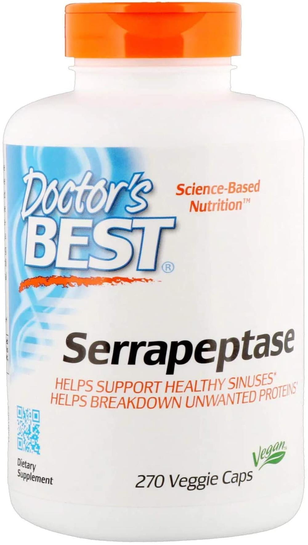 Doctor's Best Serrapeptase, Non-GMO, Gluten Free, Vegan, Supports ... This item: Doctor's Best Serrapeptase, Non-GMO, Gluten Free, Vegan, Supports Healthy Sinuses, 40,000 SPU, 270 Count (Pack of 1) $3259 ($0.12/Count) Doctor's Best Nattokinase, Non-GMO, Vegan, Gluten Free, 270 Veggie Caps $3505 ($0.13/Count)